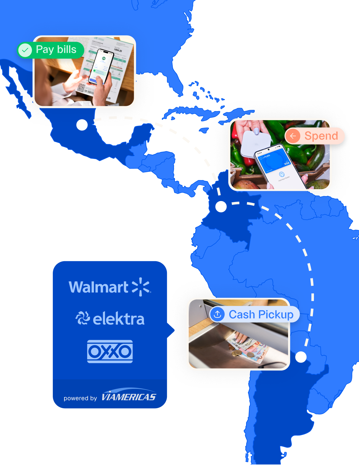 Pick up cash at over 100,000 retail locations across Latin America